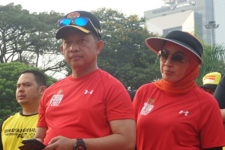 KOMPAS.com/AMBARANIE NADIA Kapolri Jenderal Pol Tito Karnavian membuka acara Bhayangkara Run di Monumen Nasional, Jakarta Pusat, Minggu (16/7/2017).